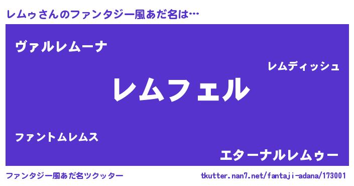 | ポケモン風あだ名 | 『レムゴンZ』『レムチュウ』 |