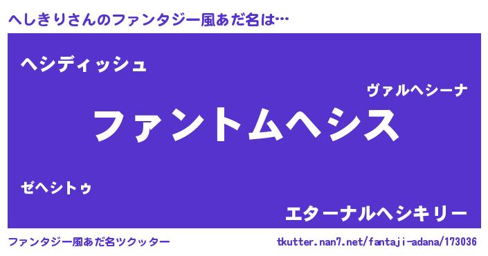 | ポケモン風あだ名 | 『ヘシゴンZ』『ヒヘシキリ』 |