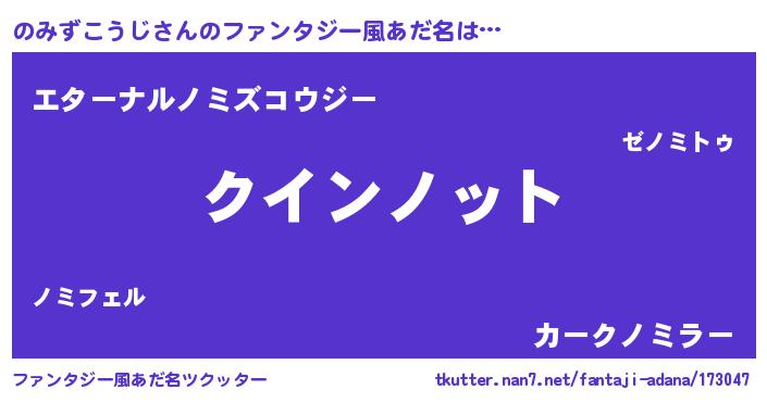 | 男性向けラノベタイトル風あだ名 | 『ノーゲーム・ノーノミズコウジ』 |