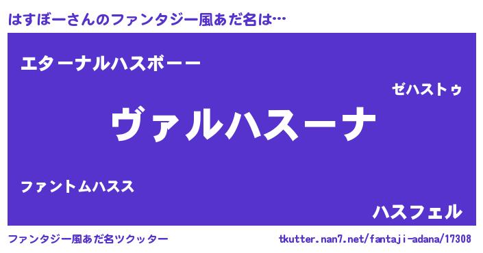 | 男性向けラノベタイトル風あだ名 | 『魔弾の王とはすぼー』 |