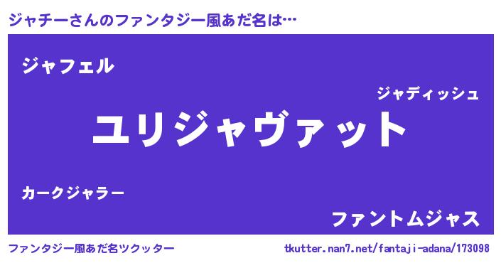 | 胡散臭い通販商品みたいなあだ名 | 『必ず成功するブレスレット…その名も「ジャチー」』 |