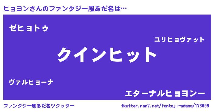 | 男性向けラノベタイトル風あだ名 | 『おまえをオタクにしてやるから、俺をヒョヨンにしてくれ! 』 |