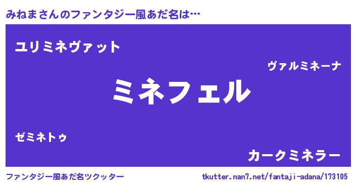 | 胡散臭い通販商品みたいなあだ名 | 『億万長者になれる霊験あらたかなお札…その名も「みねま」』 |