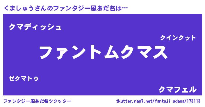 | ヒーロー風カッコイイあだ名 | 『暗黒騎士クマ』『ネオクマシュウ』 |