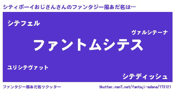 | 男性向けラノベタイトル風あだ名 | 『シティボーイおじさんの嫁は女の子じゃないと思った?』 |