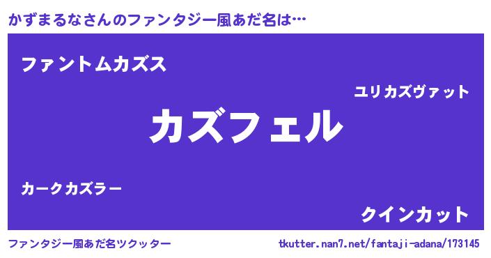 | 胡散臭い通販商品みたいなあだ名 | 『モテモテ間違いなし霊験あらたかなお札…その名も「かずまるな」』 |