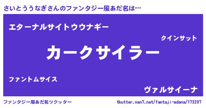 | 意味不明あだ名 | 『さいとううなぎフォーエバー』 |