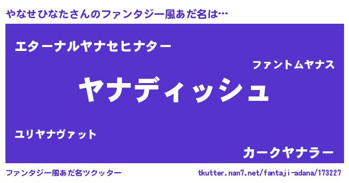 | ヒーロー風カッコイイあだ名 | 『ネオヤナセヒナタ』『魔戒騎士ヤナ』 |