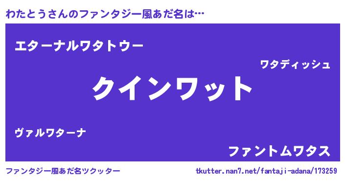 | 男性向けラノベタイトル風あだ名 | 『ノーゲーム・ノーワタトウ』 |