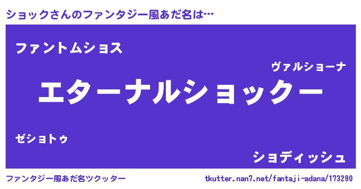 | 意味不明あだ名 | 『ショックフォーエバー』『自称ショック』 |