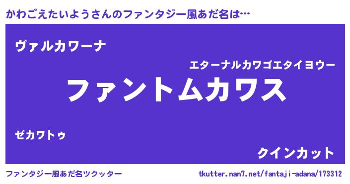| 意味不明あだ名 | 『とにかく怪しいかわごえたいよう』 |