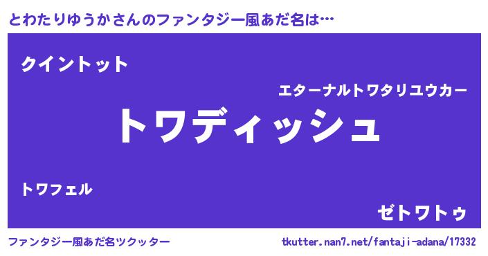 | 男性向けラノベタイトル風あだ名 | 『とわたりゆうかという概念が存在しない退屈な世界 』 |