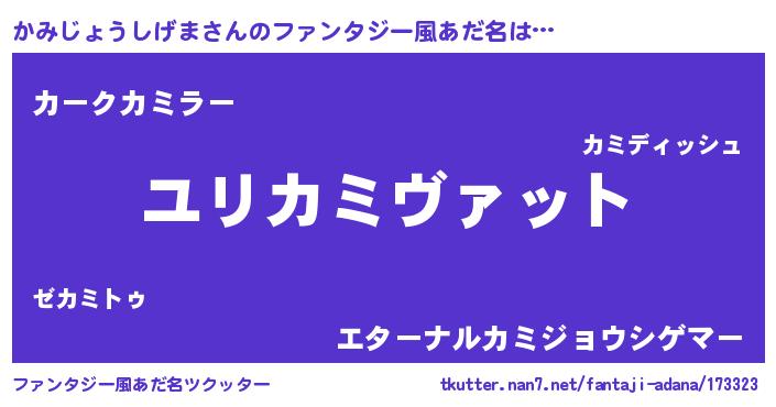 | 男性向けラノベタイトル風あだ名 | 『転生したらかみじょうしげまだった件』 |