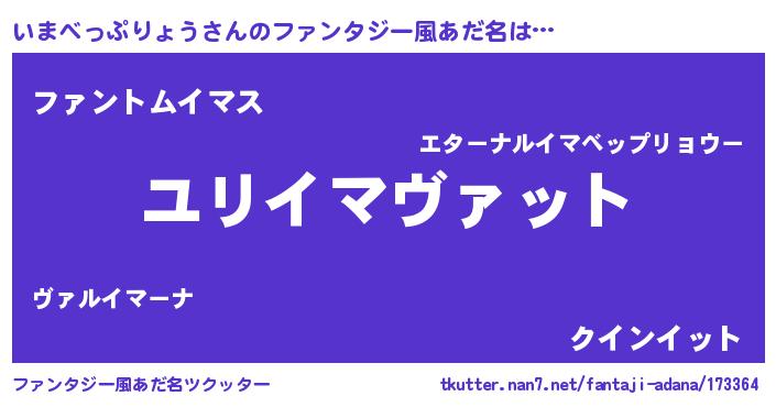 | ポケモン風あだ名 | 『イマキング』『ヒイマベップリョウ』 |