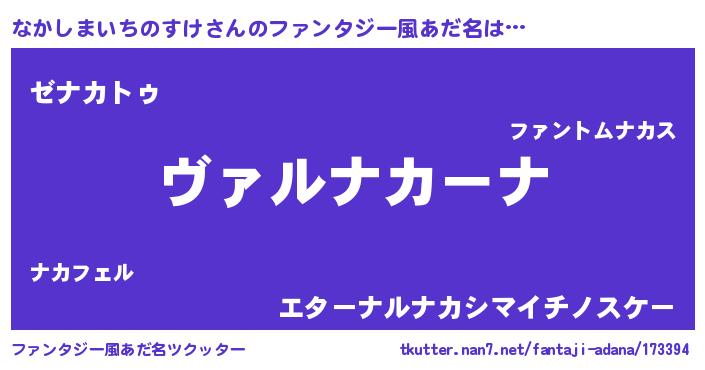 | 男性向けラノベタイトル風あだ名 | 『この素晴らしい世界になかしまいちのすけを!』 |