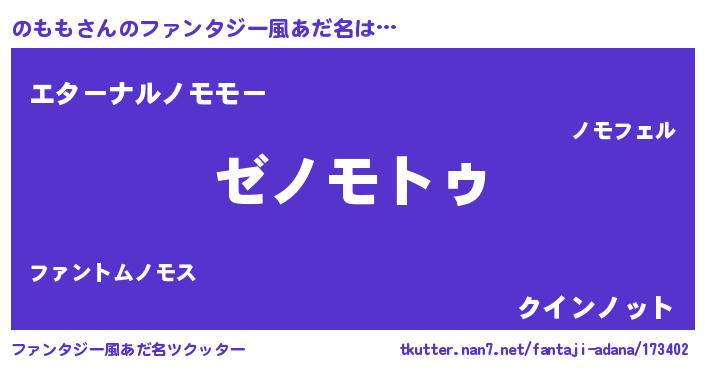 | 男性向けラノベタイトル風あだ名 | 『Re:のももから始める異世界生活』 |