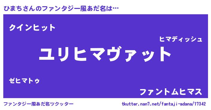 | 男性向けラノベタイトル風あだ名 | 『ヒマチスレイヤー』 |