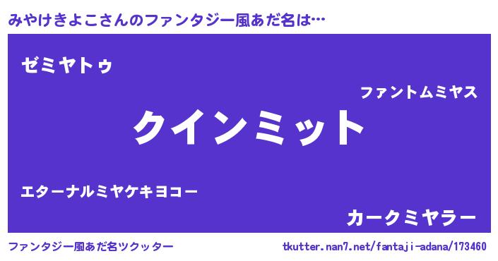 | ポケモン風あだ名 | 『ミックウザ』『ミヤセウス』 |