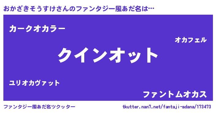 | 男性向けラノベタイトル風あだ名 | 『おまえをオタクにしてやるから、俺をおかざきそうすけにしてくれ! 』 |
