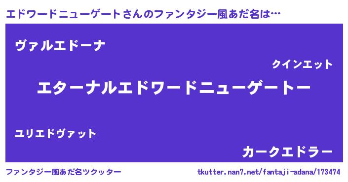 | 男性向けラノベタイトル風あだ名 | 『やはりエドワードニューゲートの青春ラブコメはまちがっている 』 |