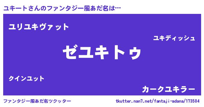| 男性向けラノベタイトル風あだ名 | 『Re:ユキートから始める異世界生活』 |
