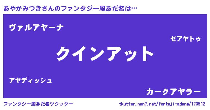 | ヘコむあだ名 | 『あやかみつき(小並感)』『なまこ酢』 |