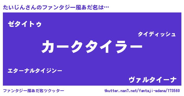 | 意味不明あだ名 | 『自称たいじん』『永久保存たいじん』 |