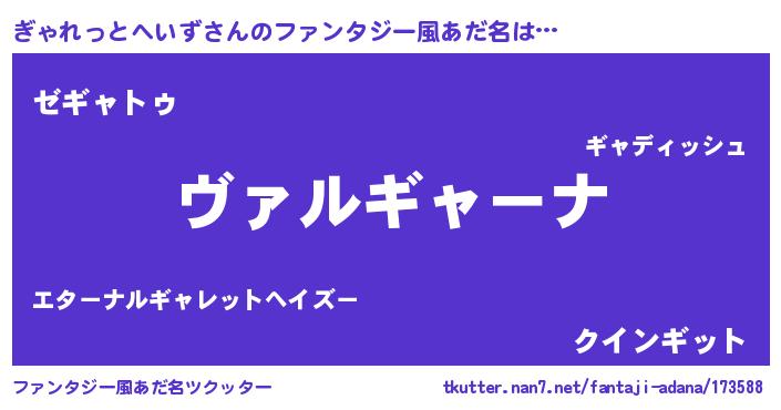 | 男性向けラノベタイトル風あだ名 | 『この素晴らしい世界にぎゃれっとへいずを!』 |