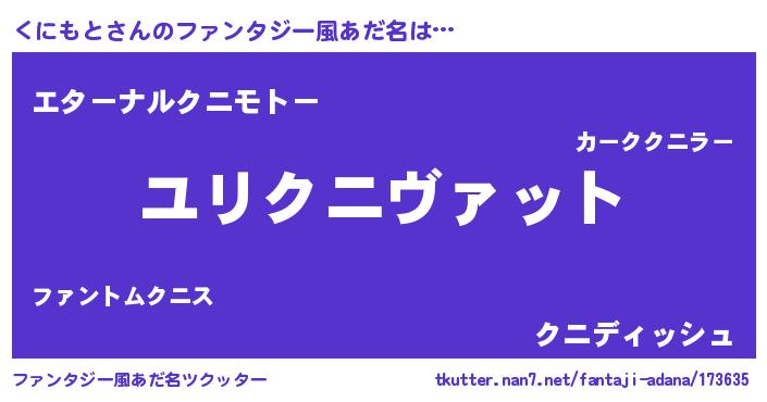 | 男性向けラノベタイトル風あだ名 | 『くにもと~年齢イコール彼女いない歴の魔法使い~』 |