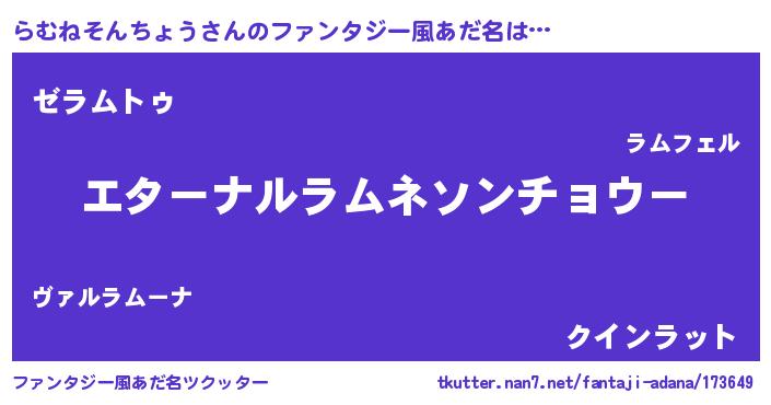| 肩書あだ名 | 『らむねそんちょう国家主席』 |