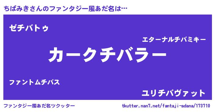 | ヘコむあだ名 | 『つくし』『ちばを』『ちばっふぃ~』 |