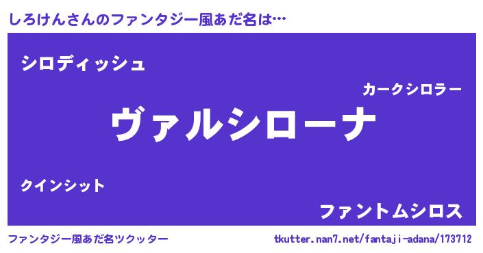 | 女子向けラノベタイトル風あだ名 | 『乙女ゲームの破滅フラグしかない悪役しろけんに転生してしまった…』 |