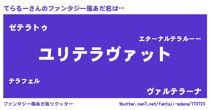 | ヒーロー風カッコイイあだ名 | 『最強戦士テラルー』『仮面テラダー』 |