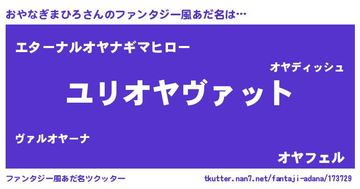 | 胡散臭い通販商品みたいなあだ名 | 『運命の人と巡り会える高級そうな絵画…その名も「おやなぎまひろ」』 |