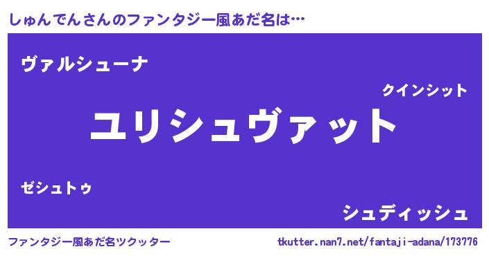 | 男性向けラノベタイトル風あだ名 | 『シュンデンスレイヤー』 |