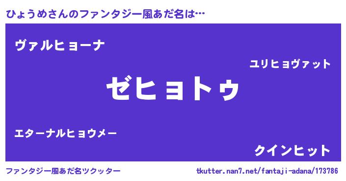 | 男性向けラノベタイトル風あだ名 | 『Re:ひょうめから始める異世界生活』 |