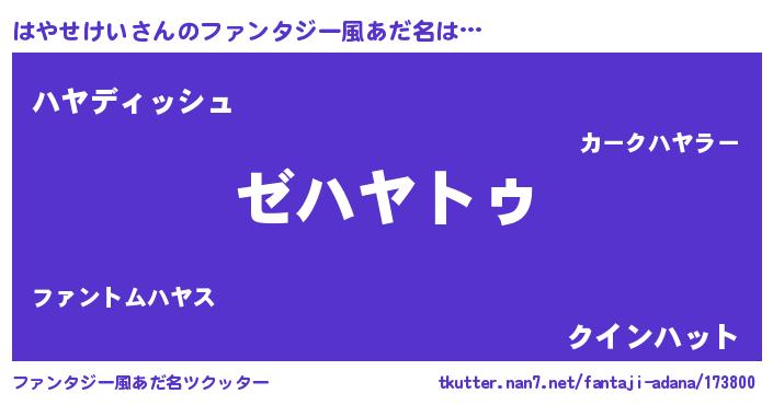 | ポケモン風あだ名 | 『ハヤゴンZ』『ハヤセウス』 |