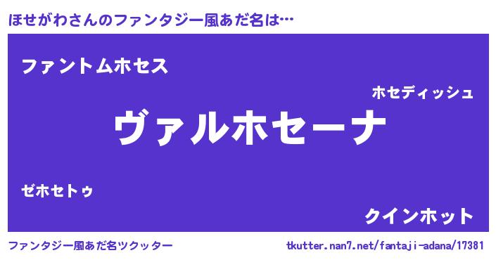 | 男性向けラノベタイトル風あだ名 | 『魔弾の王とほせがわ』 |