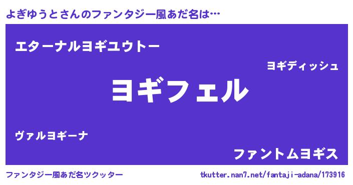 | ポケモン風あだ名 | 『ヨギチュウ』『ヨギユダネ』 |