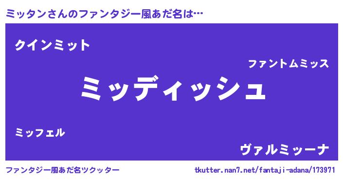 | ヒーロー風カッコイイあだ名 | 『ネオミッタン』『慈愛の使者ミッタン』 |