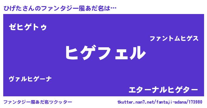 | 男性向けラノベタイトル風あだ名 | 『ヒゲタアートオンライン』 |
