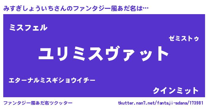 | 男性向けラノベタイトル風あだ名 | 『みすぎしょういち~年齢イコール彼女いない歴の魔法使い~』 |