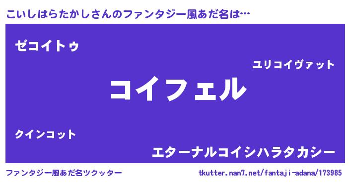 | 意味不明あだ名 | 『ペロリンこいしはらたかし』 |