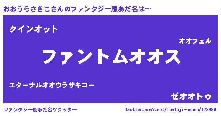 | ポケモン風あだ名 | 『ヒオオウラサキコ』『オックウザ』 |
