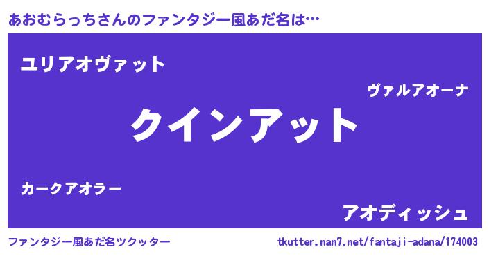 | 女子向けラノベタイトル風あだ名 | 『あおむらっち恋絵巻』 |