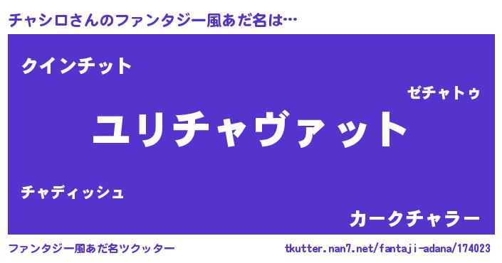 | ヒーロー風カッコイイあだ名 | 『慈愛の使者チャシロ』『ネオチャシロ』 |
