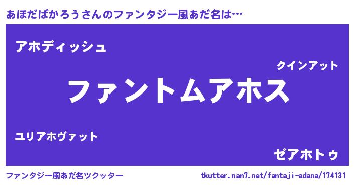 | 男性向けラノベタイトル風あだ名 | 『ダンジョンにあほだばかろうを求めるのは間違っているだろうか』 |