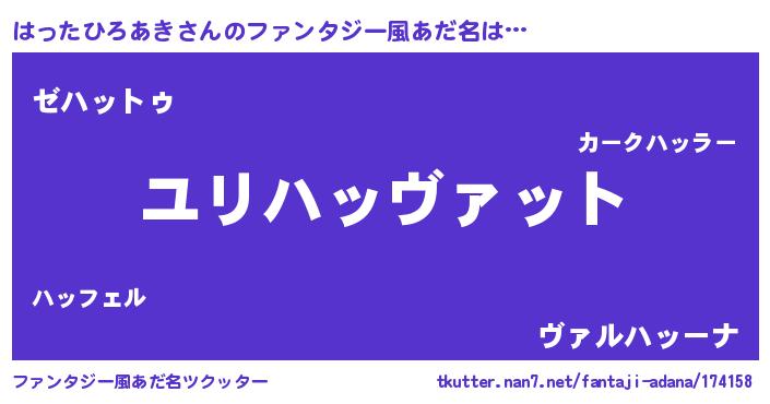 | 男性向けラノベタイトル風あだ名 | 『ハッタヒロアキスレイヤー』 |