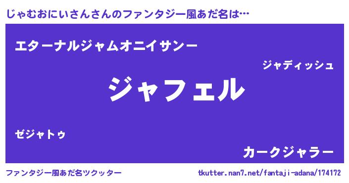 | 男性向けラノベタイトル風あだ名 | 『じゃむおにいさんの憂鬱』 |