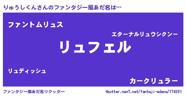 | 男性向けラノベタイトル風あだ名 | 『りゅうしくんの憂鬱』 |